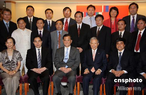 9月22日,中國國民黨榮譽主席連戰,在臺北會見前來參加紀念海峽兩岸出版交流20周年系列活動的部分大陸代表團成員。中新社發 陳立宇 攝