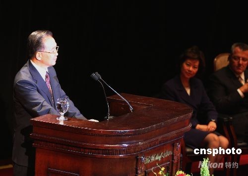 中國總理溫家寶23日在紐約出席美國友好團體午宴并發表演講。中新社發 李靜 攝