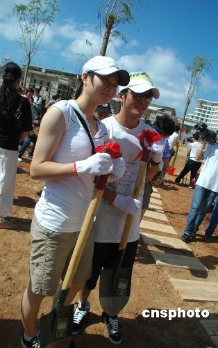 10月21日,參加“三亞城市精神評選暨奧運冠軍三亞行活動”的14位奧運會冠軍在三亞灣種下“冠軍林”。本次來三亞的主要是拳擊、跆拳道、舉重等力量型項目的奧運冠軍,包括張小平、鄒市明、陸永、陳燮霞等及悉尼、雅典兩屆前奧運會冠軍陳中等。中新社發 尹海明 攝