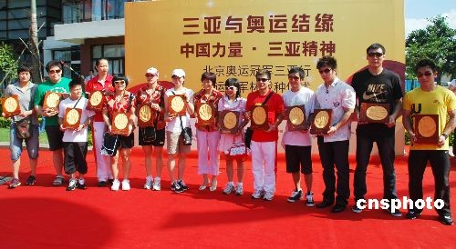 圖:14位奧運冠軍在三亞留下“冠軍手印”
