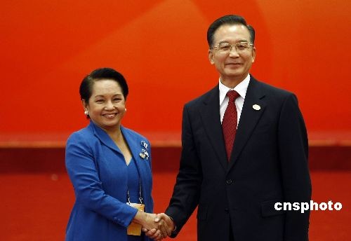 圖為溫家寶歡迎菲律賓總統(tǒng)阿羅約。中新社發(fā) 盛佳鵬 攝