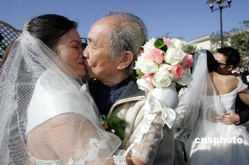 10月26日,11對來自全國各地的新人在北京舉行集體婚禮;槎Y中,中央美術學院的吳介琴教授是所有新人里年齡最大的,今年已經81歲了。他的愛人蔣曉輝女士今年58歲,兩人相識于網絡。