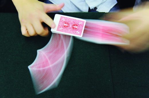 反賭專家演示撲克牌發(fā)牌過(guò)程中控制牌的技巧。 秦樓 攝
