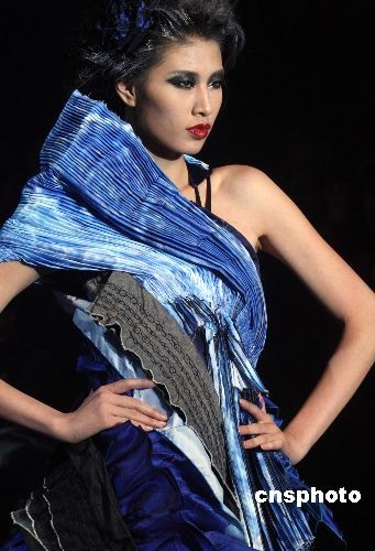 11月11日晚,在北京舉行的中國國際時裝周2009春夏系列發(fā)布上,推出了一場名為長江的2009春夏高級時裝發(fā)布會。作者以長江景象、長江技藝、長江情懷為創(chuàng)意主題,以時裝創(chuàng)作藝術(shù)手法表現(xiàn)中華民族豐富絢麗的文化。圖為模特展示2009春夏《長江系列》高級時裝發(fā)布新款。中新社發(fā) 錢興強(qiáng) 攝