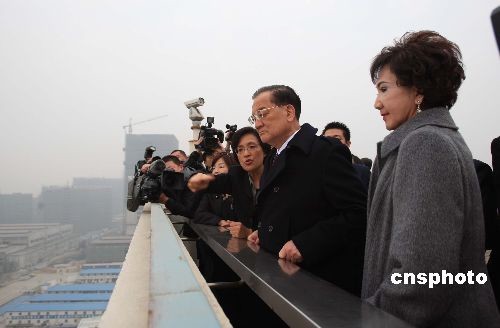 12月20日,中國國民黨榮譽主席連戰一行訪問上海世博局并俯瞰正在建設中的世博場館。中新社發 潘索菲 攝
