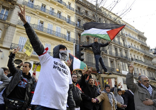 在法國馬賽,民眾舉行集會抗議以軍襲擊加沙地區。