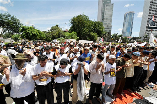 1月3日,印尼民眾舉行游行活動抗議以色列軍隊襲擊加沙地帶。