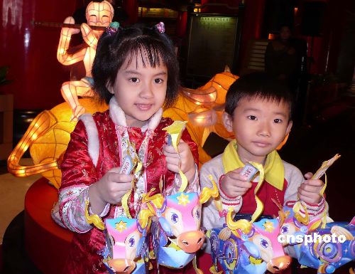 圖為臺灣小朋友對小提燈“星光牛”愛不釋手。中新社發(fā) 路梅 攝