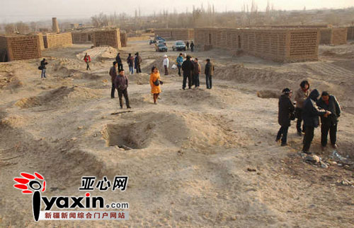 新疆考古所研究工作人員和鄯善縣旅游文物局工作人員對墓葬現場進行初步勘察。