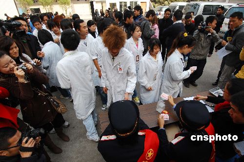 一月七日上午,廣州鐵道部門為番禺一家企業為外來工提供送春運返鄉車票上門服務。廣鐵集團計劃在四天時間為幾十家企業上門送票十萬多張。中新社發 柯小軍 攝