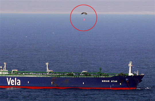 美國海軍的監(jiān)測部門指出,沙特超級油輪“天狼星號(hào)”在被挾持近兩個(gè)月后,9日有一架小飛機(jī)突然飛越船只上空,并丟下帶有降落傘的“包裹”,而這個(gè)包裹應(yīng)該就是用來贖人的300萬美元。根據(jù)各方信息,索馬里海盜在確認(rèn)接收贖款后,已經(jīng)釋放25名船員,讓油輪駛離索中部的哈拉赫里港。