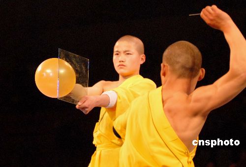 少林功夫之針穿玻璃。中新社發 楊洋 攝