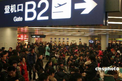 2月2日,牛年春節后首場濃霧籠罩川西大地。成都雙流國際機場受濃霧襲擊發布了三級預警信號,機場關閉達四個多小時,直接造成一百二十一個進出港航班延誤,并導致十個進出港航班取消,來自新加坡、浦東的個別進港航班分別備降昆明、重慶,同時致使近一點三萬名旅客受阻于機場。中新社發 呂俊明 攝