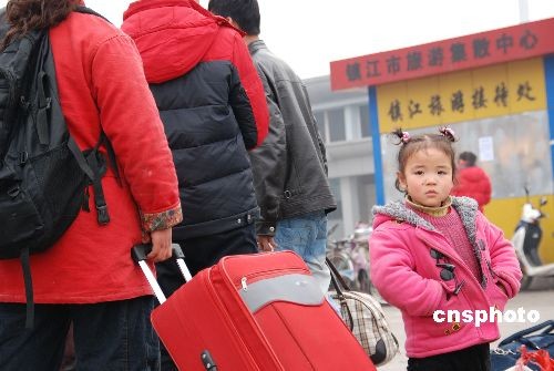春節剛過,2月5日,江蘇鎮江很多民工又回到城里,“小候鳥”也跟著父母來到城里。中新社發 封波 攝