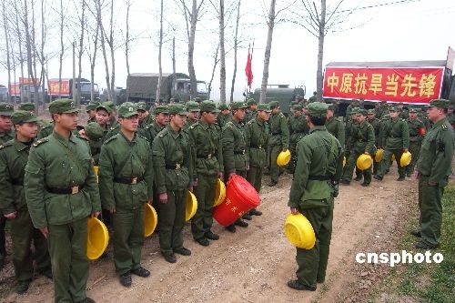 2月6日,駐河南許昌某部隊出動官兵1000余人,組成數支抗旱突擊隊,趕到災情最為嚴重的許昌市許昌縣蔣李集鎮、河街鄉一帶抗旱救災,力爭把災害降到最低程度。
