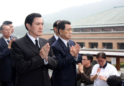 馬英九蕭萬長伴送圣嚴法師舍利函前往植存區