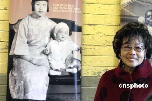 華裔移民方趙玉蓮捐出母親當年被羈留時所用的衣物以及自己和母親的照片,盼后代不忘華人移民之艱辛。中新社發 陳鋼 攝