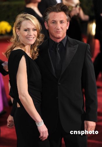 本屆影帝最大熱門肖恩·潘攜妻子羅賓·懷特一同走過(guò)紅地毯。中新社發(fā) 張煒 攝