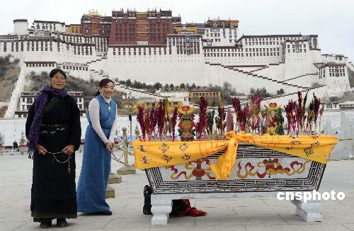 布達拉宮廣場布置巨型“切瑪”喜迎藏歷新年
