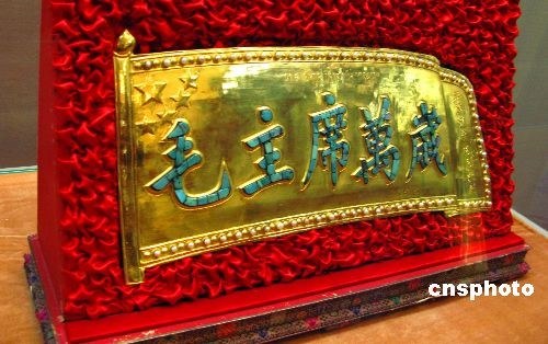 2月25日,在北京民族文化宮舉辦的《西藏民主改革50年大型展覽》免費(fèi)向民眾開(kāi)放。圖為展會(huì)展出十世班禪額爾德尼獻(xiàn)給毛澤東主席的“毛主席萬(wàn)歲”金盾。中新社發(fā) 鄒憲 攝