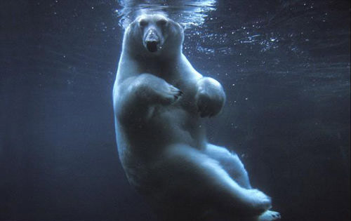 北極熊生活照。美國攝影師史蒂文·約翰·科茲洛夫斯基(Steven John Kazlowski) 在北極地區歷經5年拍攝到了許多北極熊罕見的生活照?破澛宸蛩够谜掌蛉藗冋故玖吮睒O熊潛入深水,陪伴幼熊以及尋找獵物時的自然美與優雅。