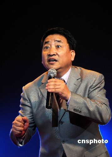 全國政協委員、著名相聲表演藝術家姜昆表演相聲。中新社發 宋健浩 攝