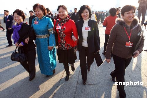 3月8日國(guó)際婦女節(jié),全國(guó)政協(xié)十一屆二次會(huì)議在北京人民大會(huì)堂舉行第三次全體會(huì)議,前來(lái)參加會(huì)議的女委員面帶微笑步入會(huì)場(chǎng)。中新社發(fā) 盛佳鵬 攝