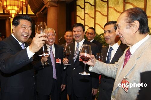 圖:賈慶林向港澳地區(qū)全國(guó)政協(xié)委員敬酒