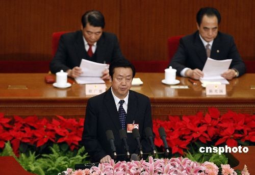 3月10日,第十一屆全國人民代表大會第二次會議在北京人民大會堂舉行第三次全體會議,最高人民法院院長王勝俊在向大會作工作報告時指出,要嚴(yán)懲重大安全責(zé)任事故、制售偽劣食品藥品。中新社發(fā) 盛佳鵬 攝