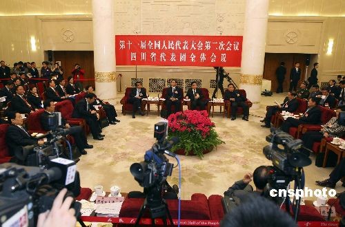 圖:四川代表團舉行全體會議并向中外媒體開放