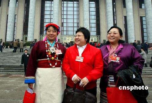 圖為歌星韓紅與藏族委員們在大會堂前留影。中新社發 傅丹丹 攝