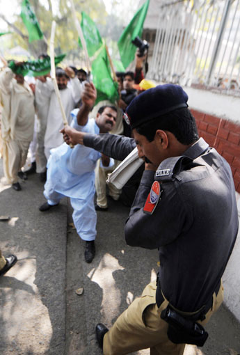 3月15日,巴基斯坦前總理謝里夫的支持者在拉合爾舉行抗議集會時與警察發生沖突。