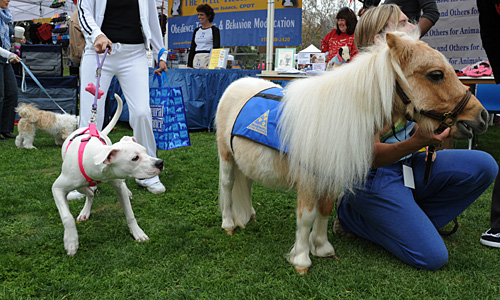 寵物馬“柳樹”成為小狗注視的焦點。