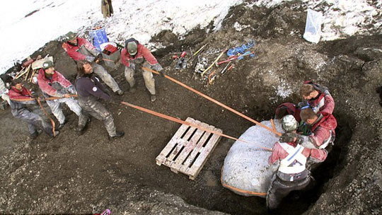 挪威古生物學(xué)者許魯姆率領(lǐng)的考察隊,在挪威斯瓦爾巴群島發(fā)掘一具生存于距今1.5億年前侏羅紀(jì)時期的一只長達(dá)15米的古老爬行動物的化石。
