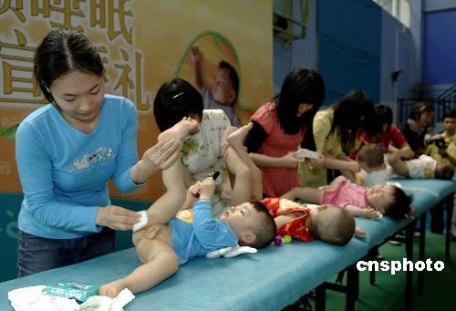 3月21日是世界睡眠日,在“科學管理睡眠”的號召下,廣州舉行了金質睡眠宣誓活動全國巡展第一站,上千名小寶寶在爸爸媽媽們的帶領下宣誓。除了熱情洋溢的寶寶宣誓禮外,還舉行了媽媽為寶寶換尿布比賽。中新社發(fā) 劉衛(wèi)勇 攝