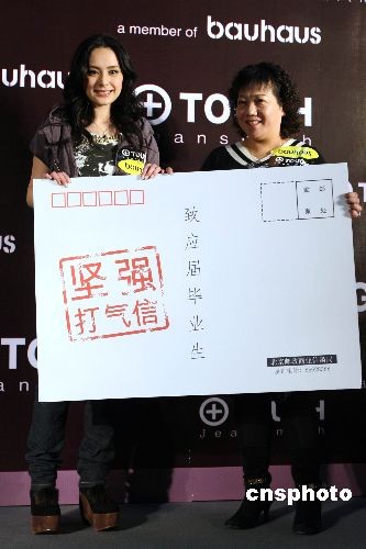 2009年3月21日,香港歌星阿嬌在北京西單大悅城為其代言的牛仔品牌做最后一站巡回宣傳。阿嬌在活動中表示很遺憾沒能到北京看奧運會,但這次接下復出后第一份工作并在北京看到支持的歌迷讓她感受到了生活的快樂和堅強的意義。中新社發 袁方 攝