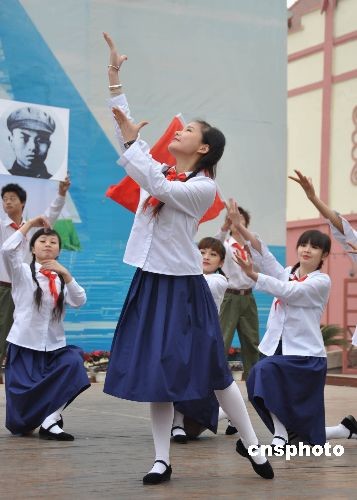 3月25日,長沙世界之窗舉辦的校服秀展示了新中國成立60年來不同時期的中小學生校服,勾起了不少市民孩童時的回憶。中新社發 肖前輝 攝