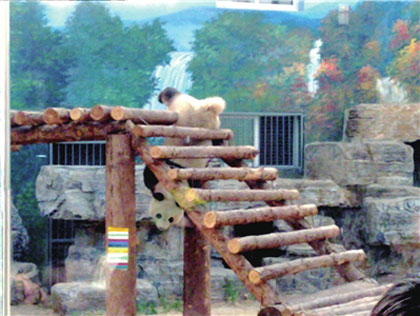 前天下午,北京動物園奧運熊貓館內,大熊貓“萌萌”玩耍時不慎“失足”,大頭朝下卡在了木梯縫隙處,懸在半空,驚得游客們四處找飼養員來解救。沒想到,看似笨拙的“萌萌”是只名副其實的“功夫熊貓”,它施展軟功柔術,努力挺身抓住木梯平臺,不到5分鐘便成功自救,贏得游客一片掌聲。