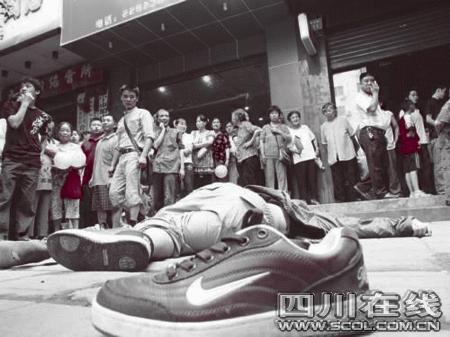 遂州中路是遂寧的繁華街道,現場很快聚集了很多圍觀市民。圍觀市民看見:躺在地上的死者很像一個高中生,年齡十八九歲,右手挽有一黑色雙肩背包。“25日是高考成績公布的日子,這個人又像高中生,是不是他沒考好而跳樓自殺哦。”“唉!榜上無名,腳下有路,再怎么說也不應該走這條路呀!”圍觀市民議論紛紛,“高考生跳樓”的消息不脛而走。