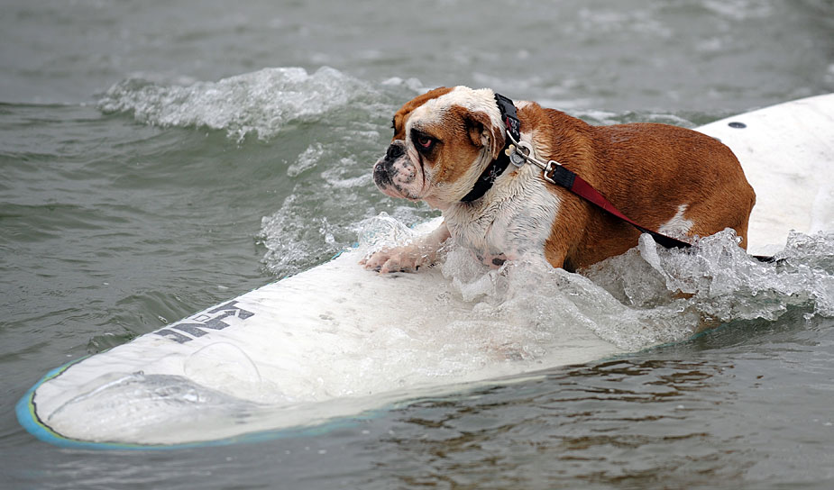 6月20日,在美國加利福尼亞州帝國沙灘舉行了一場小狗沖浪比賽,小狗們表現(xiàn)得十分認(rèn)真。
