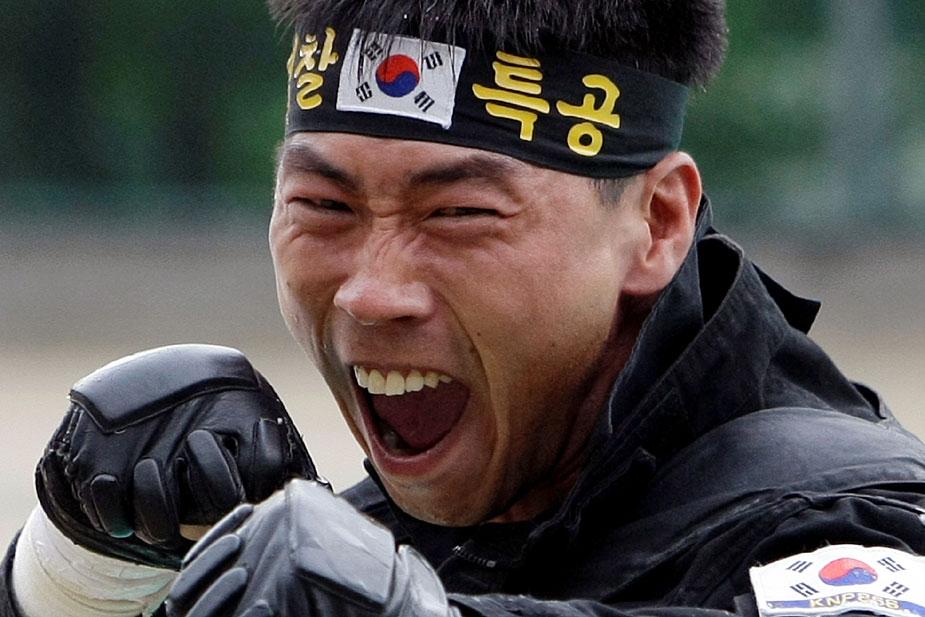 7月2日,韓國特警在韓國首都首爾市舉行了反恐演習。韓國特警先后表演了一系列高難度動作,令人目不暇接。