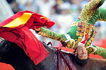 斗牛士被牛撞飛