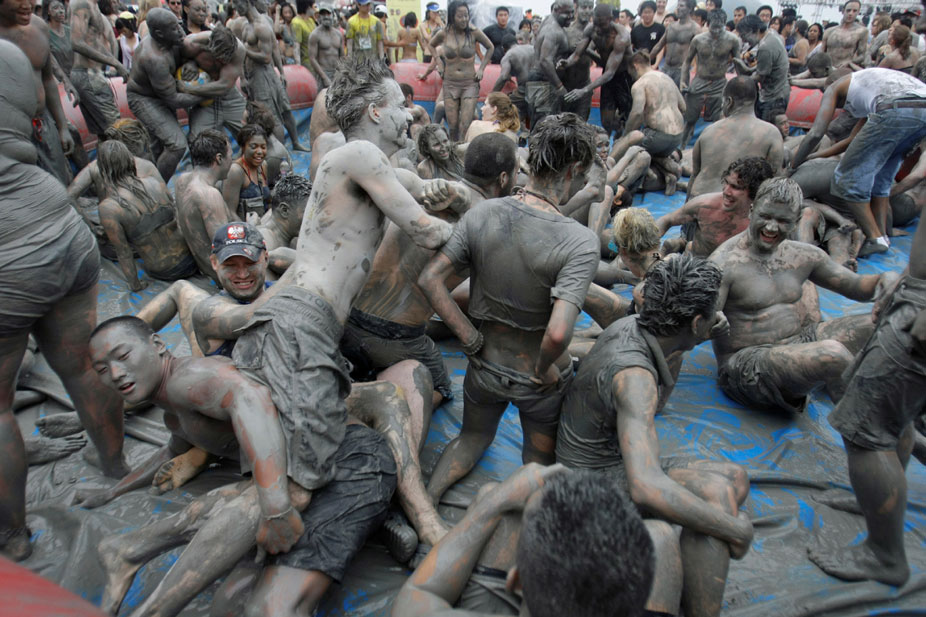 7月11日,韓國第12屆保寧美容泥漿節泥巴大戰在大川海灘舉行。