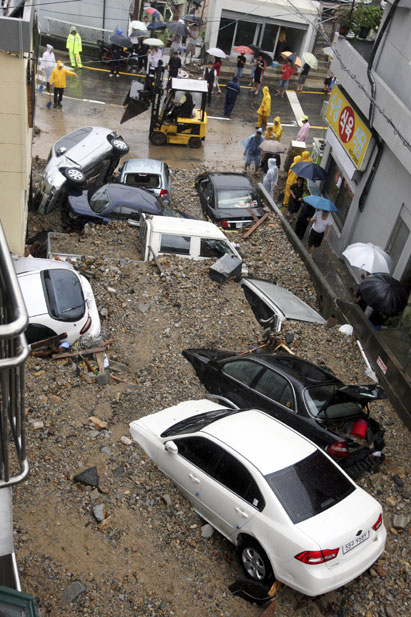 7月16日,因暴雨引發(fā)了泥石流,韓國釜山街頭一些車輛被沙石掩埋,目前人員傷亡情況尚不清楚。