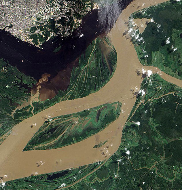 英國媒體近日公布了一組衛(wèi)星上拍攝到的地球自然景觀的照片,領觀者頗感震撼。圖為從衛(wèi)星上拍到的洪水。