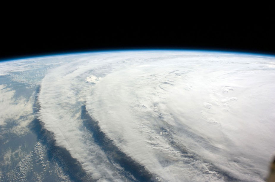 英國媒體近日公布了一組衛星上拍攝到的地球自然景觀的照片,領觀者頗感震撼。圖為從衛星上拍到的颶風產生的氣流。