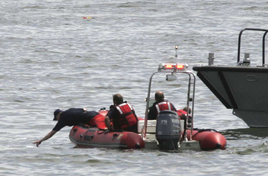 8月8日,紐約市曼哈頓西側的哈德遜河上空,一架觀光直升飛機和一架小型飛機相撞,兩飛機雙雙墜入河中。據稱觀光直升飛機上載有五名意大利游客和一名飛行員,而小型飛機上則有三人。圖為工作人員在現場救援。