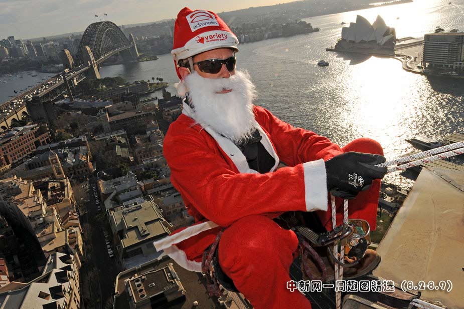 8月5日,澳大利亞5名男子身著圣誕老人服飾從悉尼歌劇院旁一高層酒店樓頂“從天而降”。點擊觀看詳細內容