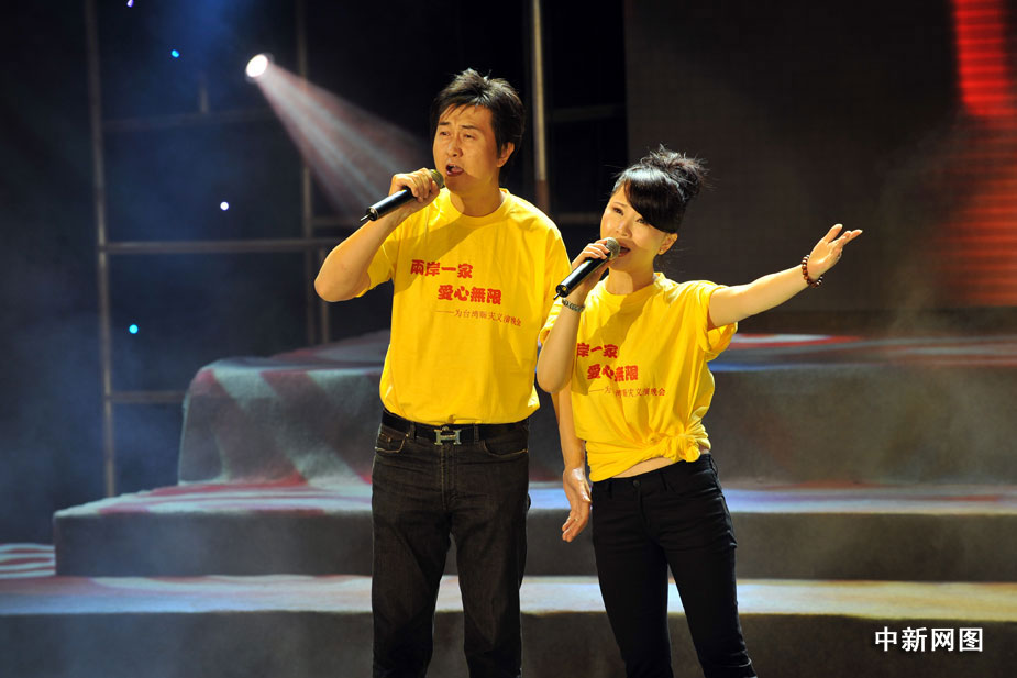8月22日晚,北京舉行“兩岸一家 愛心無限”為臺灣同胞賑災義演晚會,大陸和臺灣演藝界明星登臺為臺灣災區同胞共獻愛心,晚會臨近結束時共收到各界捐款3000多萬元。中新網記者 金碩 攝