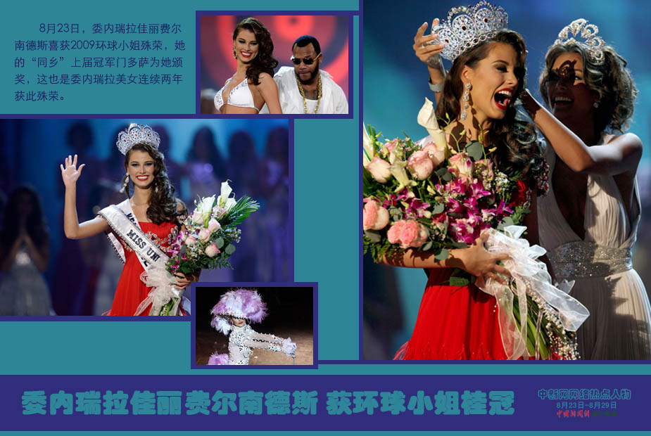中新網(wǎng)本周熱點(diǎn)人物之——費(fèi)爾南德斯  8月23日,在巴哈馬拿騷舉行的2009環(huán)球小姐大賽中,委內(nèi)瑞拉小姐斯特凡尼婭·費(fèi)爾南德斯奪得桂冠。